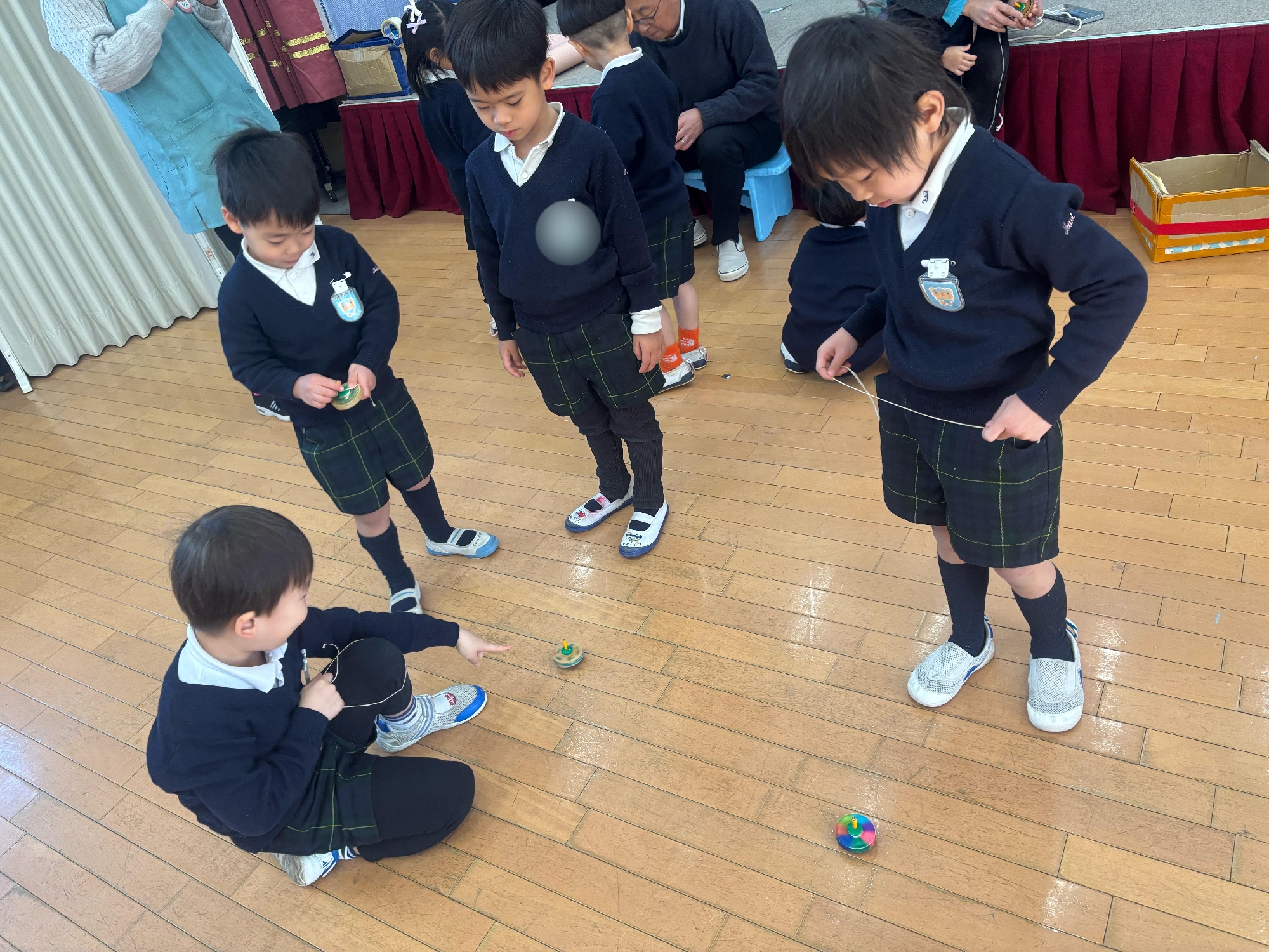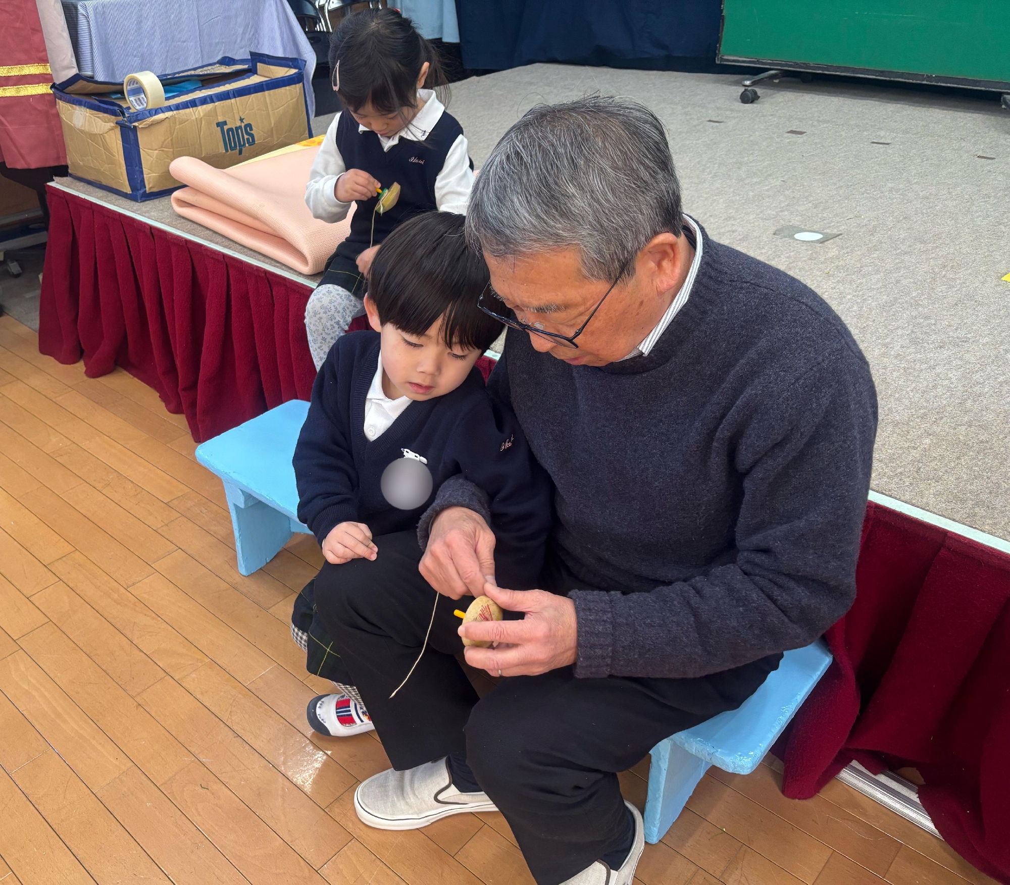 「〇〇くんに教えて貰ったから、コマが回せるようになったよ!」